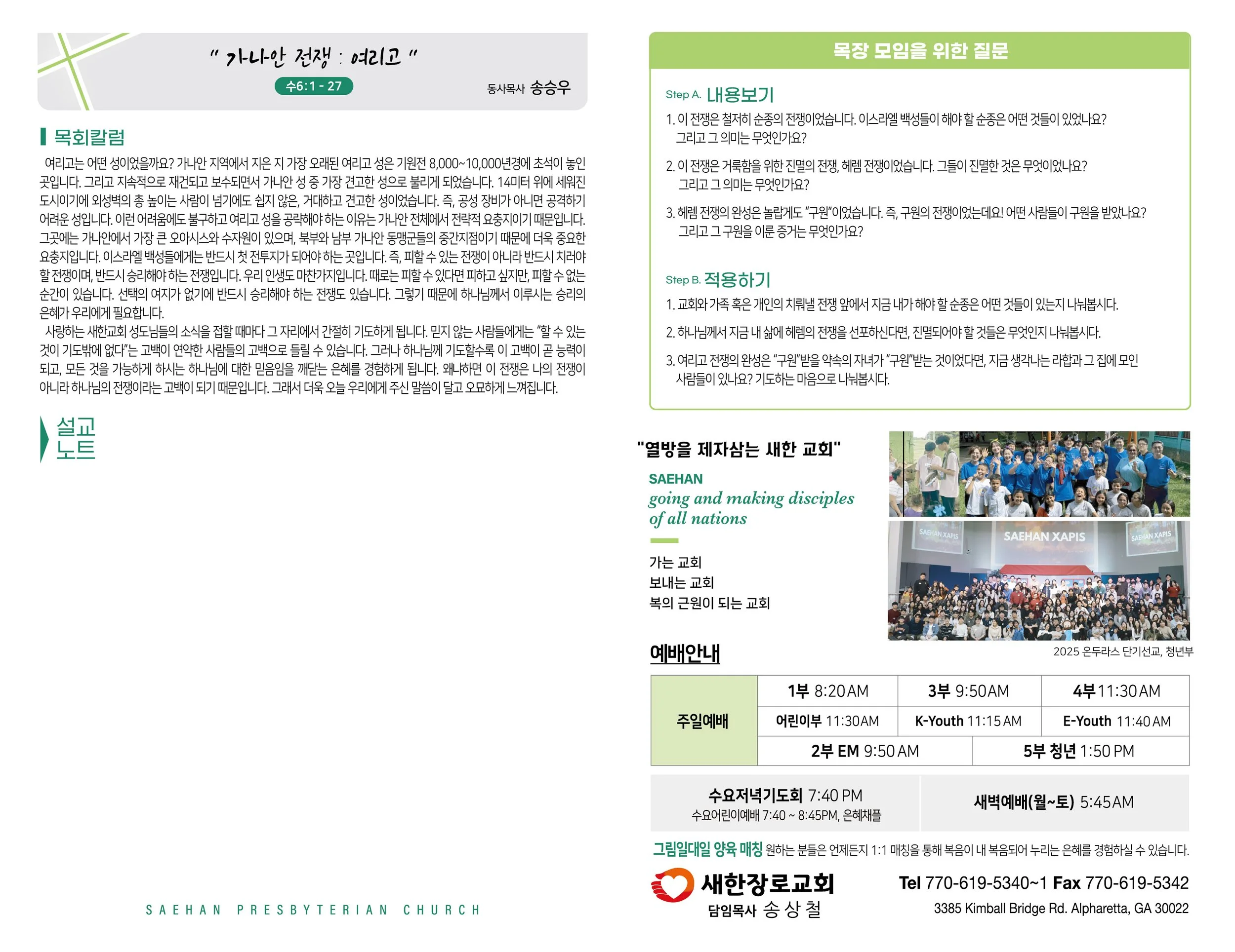 ○ 문의: 배요한 목사 (404-271-9090), 총괄 디렉터 신혜원 선생 (706-302-5846)